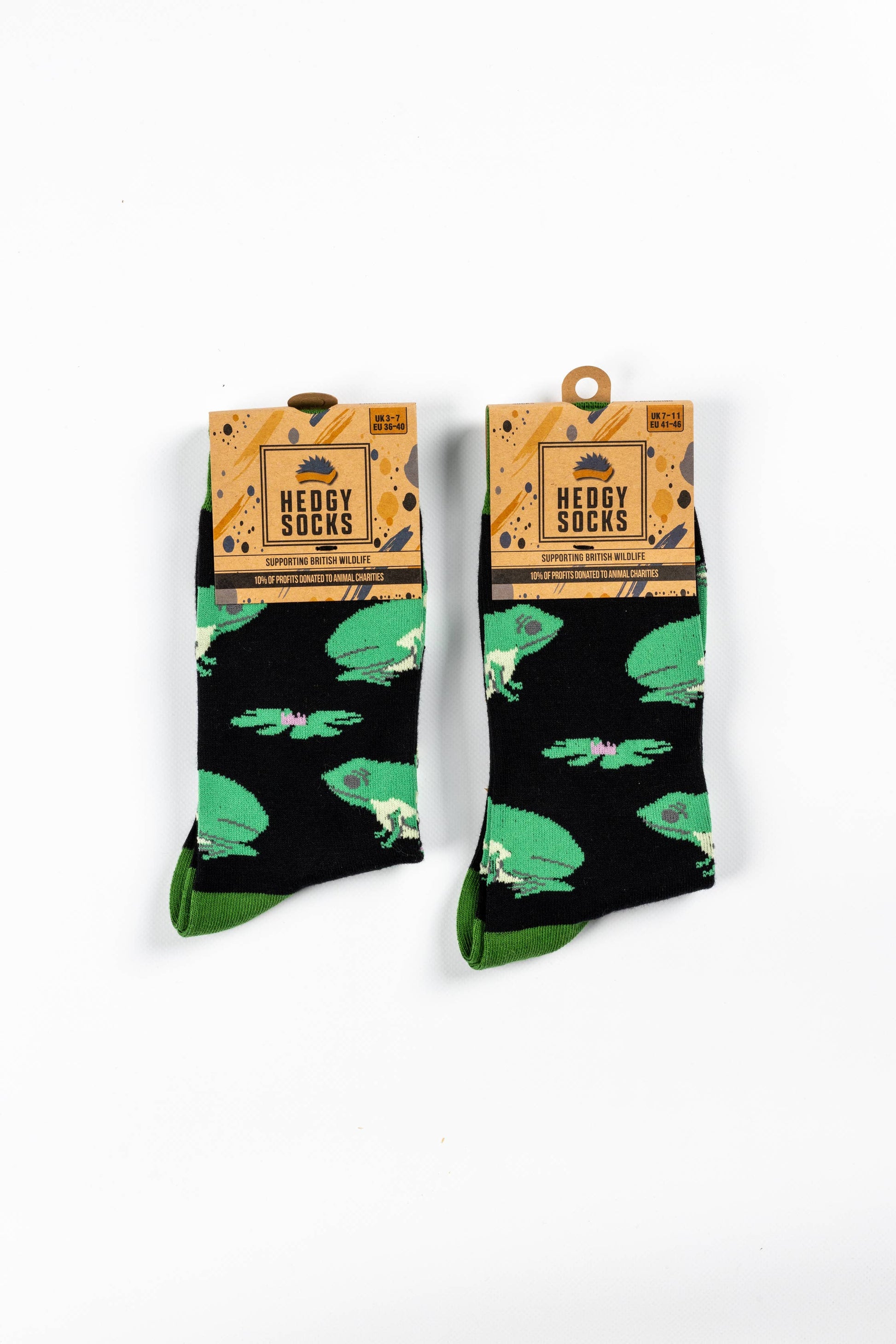✦ Materials: 80% Bamboo, 17% Spandex, 3% Nylon ✦ Giving back to our community: For each pair sold we provide a 10% charitable donation to a local wildlife hospital & rehabilitation centre ✦ Sock sizes: UK 3-7 (EU 36-40) & UK 7-11 (EU 41-46) ✦ Colour: Black/Green ✦ Sustainable: Yes ✦ Design: Our designs are created explicitly for Hedgy Socks ABOUT US: An inventive socks company that aims to create a change—starting from the ground up! Our team specializes in providing immense comfort and versatile style to your feet. Our funky designs and unique bamboo socks are woven specifically to make you feel like you are making a difference as you pull up your socks every day.