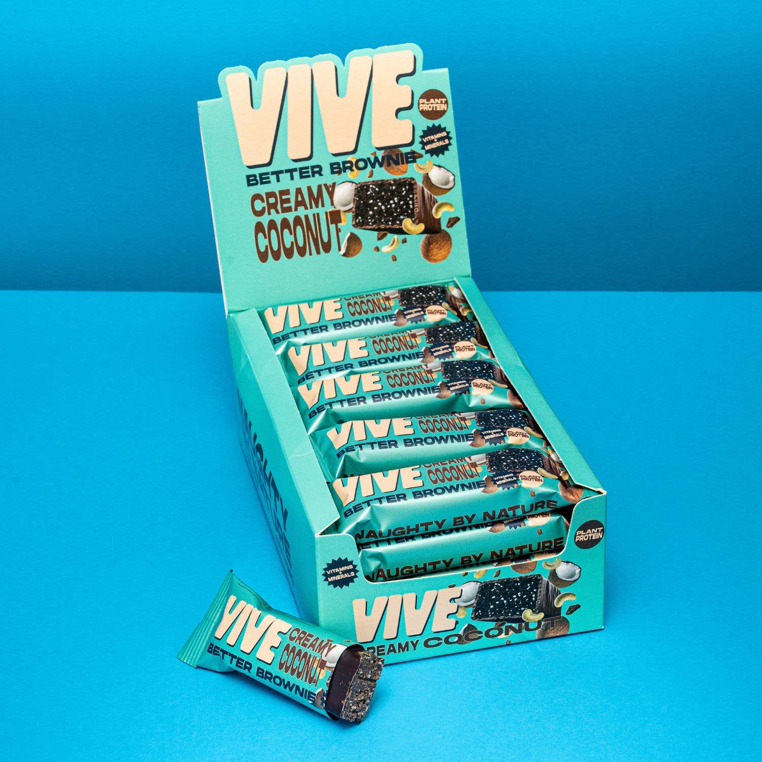 Ingredients: Cashews* (15%), Dates, Chicory Fibre, 55% Dark Chocolate (13%) (Cocoa Mass, Sugar, Cocoa Butter, Emulsifier; Soya Lecithin*, Natural Vanilla Flavouring), Coconut (8.5%), Pea Protein, Concentrated Grape Juice, Rice Starch, Rice Protein, Cocoa Butter, Cocoa Powder, Emulsifier: Sunflower Lecithin, Salt, Vitamin Mineral Complex (Vitamin C, Iron, Zinc, Copper, Vitamin B6, Vitamin A, Folic Acid, Sodium Selenite, Vitamin D3, Vitamin B12), Natural Flavouring Please note: Allergens are marked with * Made in a factory that handles other peanuts, other nuts, soya and milk. Warning: May contain the odd nut shell or date pit. Storage: Store in a cool, dark place.