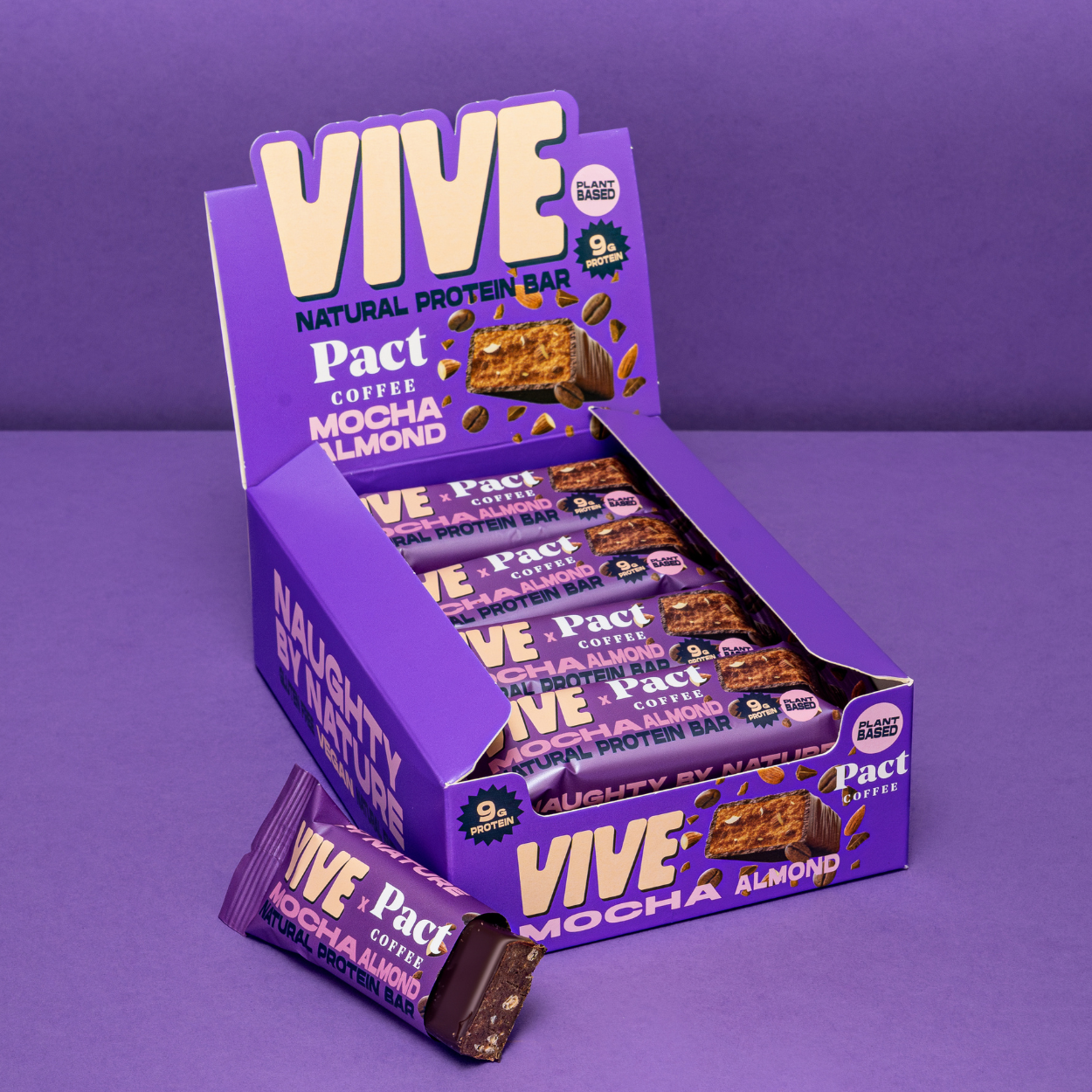 Ingredients: Cashews* (15%), Dates, 74% Organic Dark Chocolate (Cocoa Mass, Organic Cane Sugar, Cocoa Butter, Vanilla Powder), Chicory Fibre, Almonds* (10%), Pea Protein, Protein Crisp (Pea Protein, Rice Flour), Rice Syrup, Concentrated Grape Juice, , Ground Coffee (2%), Cacao Butter, Reduced Fat Cocoa Powder, Rice Protein, Emulsifier: Sunflower Lecithin, Salt, Natural Vanilla Flavour. Please note: Allergens are marked with * Made in a factory that handles other peanuts, other nuts, soya and milk. Warning: May contain the odd nut shell or date pit. Storage: Store in a cool, dark place.