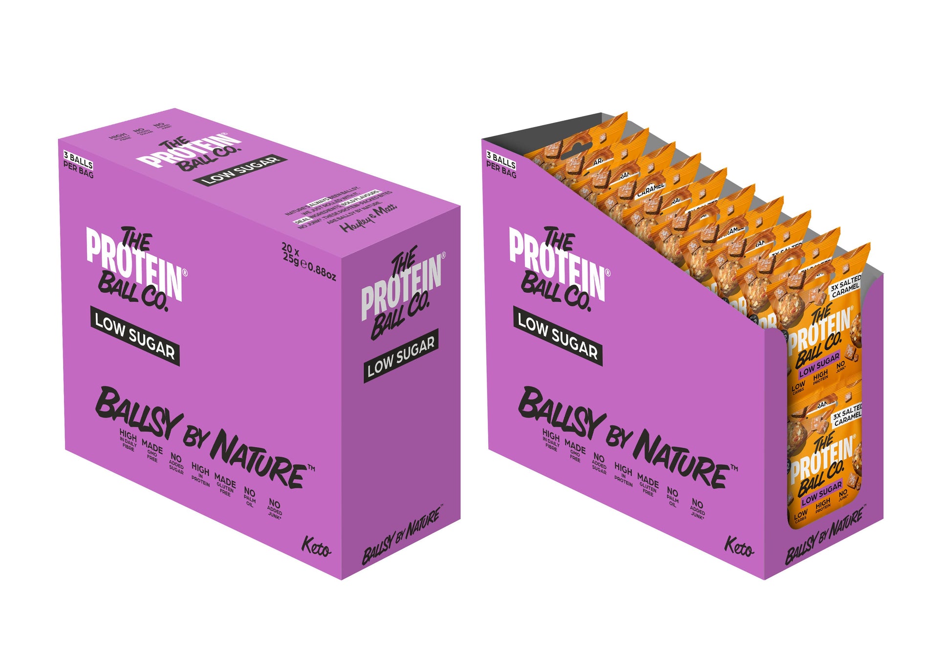 BALLSY. LIKE A SEA-SALT WAVE CRASHING AGAINST CALM CARAMEL CLIFFS. NO ADDED SUGAR, SWEETENERS OR EMULSIFIERS, AND MADE WITH SIMPLE NATURAL INGREDIENTS. HIGH IN BOTH VITAMIN C AND FIBRE. 3 X BALLS PER BAG.
